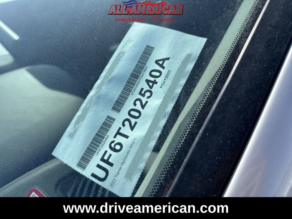 Pearl 2023 Toyota Highlander L FWD 8-Speed Automatic 2.4L I4 PDI Turbocharged DOHC 16V LEV3-SULEV30 265hp 18 Painted Alloy Wheels, 3.329 Axle Ratio, 3rd row seats: split-bench, 6 Speakers, AM/FM radio: SiriusXM, Apple CarPlay/Android Auto, Auto High-beam Headlights, Bumpers: body-color, Driver door bin, Driver vanity mirror, Fabric Seat Trim, Front Center Armrest, Heated door mirrors, Outside temperature display, Passenger door bin, Power driver seat, Radio: 8 Toyota Audio Multimedia, Rear reading lights, Rear seat center armrest, Reclining 3rd row seat, Split folding rear seat, Spoiler.22/29 City/Highway MPG