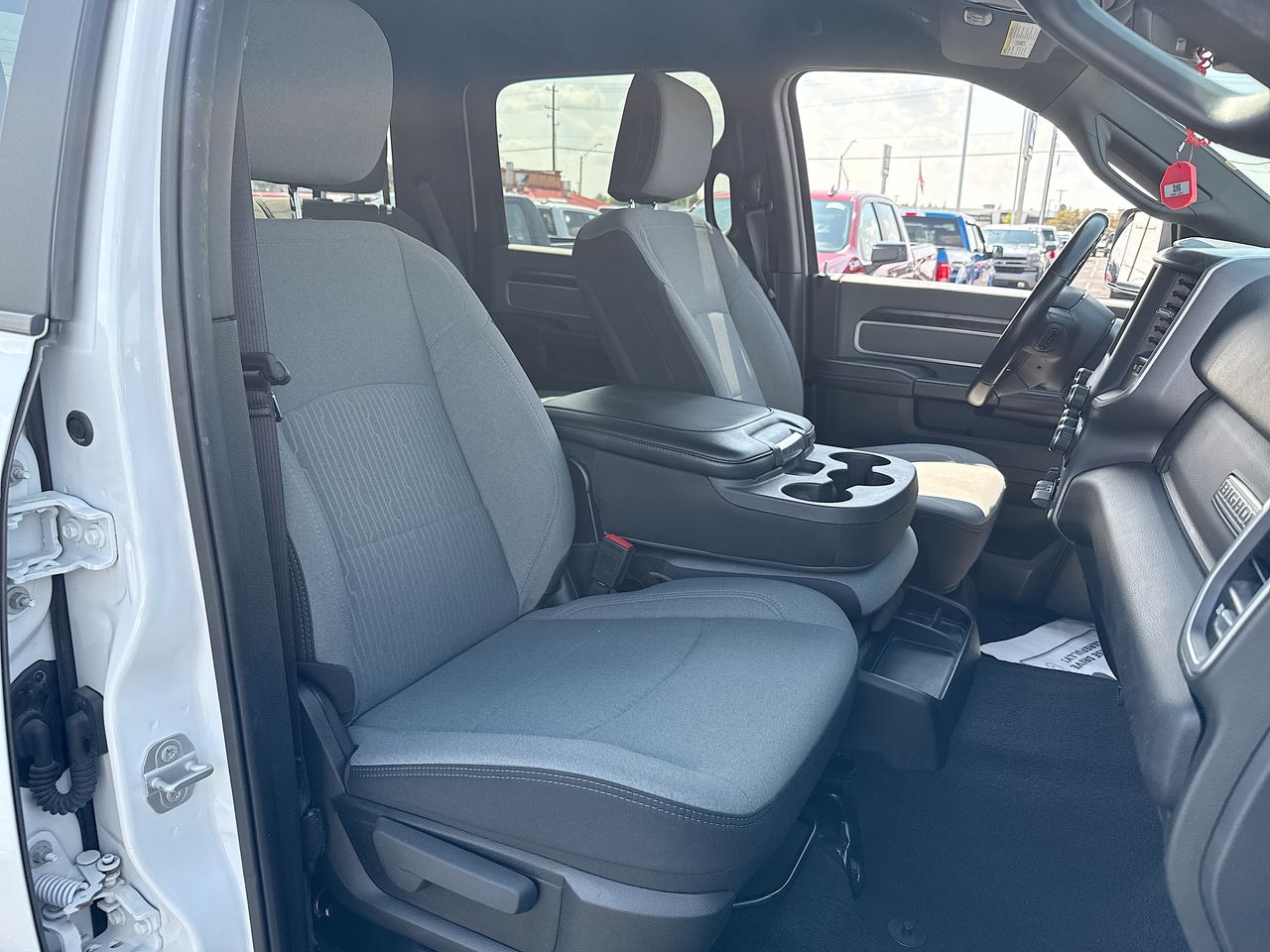 CARFAX One-Owner. Clean CARFAX. 2 Way Rear Headrest Seat, 2nd Row In Floor Storage Bins, 4 Way Front Headrests, 40/20/40 Split Bench Seat, Auto-Dimming Rear-View Mirror, Bed Utility Group, Center Hub, Center Stack Storage Drawer, Dual Glove Boxes, Foam Bottle Insert (Door Trim Panel), Folding Flat Load Floor Storage, Footwell Courtesy Lamp, Front Armrest w/Cupholders, Front Center Seat Cushion Storage, Front Fog Lamps, Front Seat Back Map Pockets, Glove Box Lamp, Leather Wrapped Steering Wheel, LED Bed Lighting, Level A Equipment Group, Locking Lower Glove Box, Manual Adjust 4-Way Front Passenger Seat, MOPAR Deployable Bed Step, MOPAR Spray In Bedliner, Power 2-Way Driver Lumbar Adjust, Power Adjust 8-Way Driver Seat, Power Adjustable Pedals, Premium Cloth 40/20/40 Bench Seat, Protection Group, Quick Order Package 2GZ Big Horn, Rear 60/40 Folding Seat, Rear Dome w/On/Off Switch Lamp, Steering Wheel Mounted Audio Controls, Storage Tray, Sun Visors w/Illuminated Vanity Mirrors, Universal Garage Door Opener, Wheels: 18 x 8.0 Polished Aluminum.