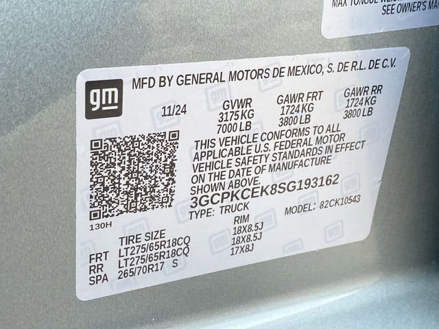 2025 Chevrolet Silverado 1500 Custom Trail Boss 4WD 2.7L I4 Turbocharged DOHC 16V LEV3-SULEV30 310hp