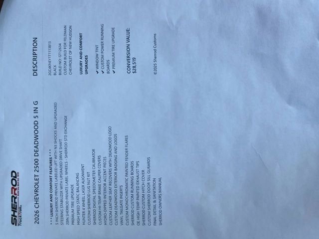 BRAND NEW TRUCK!! WITH 6 LIFT AND SHERROD UPFITT PACKAGE. CUSTOM WHEELS, TIRES, LEATHER INTERIOR, POWER RUNNING BOARDS, MUST SEE IN PERSON TO APPERCIATE. OVER A 35K VALUE PACKAGE. 2026 Chevrolet Silverado 2500HD LT **LOCATED AT FELDMAN CHEVROLET OF NEW HUDSON 248-486-1900** *VEHICLE LOCATED AT FELDMAN CHEVROLET OF NEW HUDSON CALL (248) 486-1900*, 10-Speed Automatic, 4WD, Black Leather.